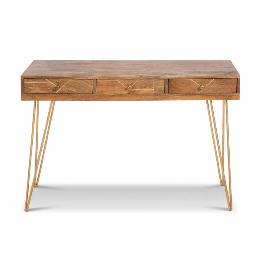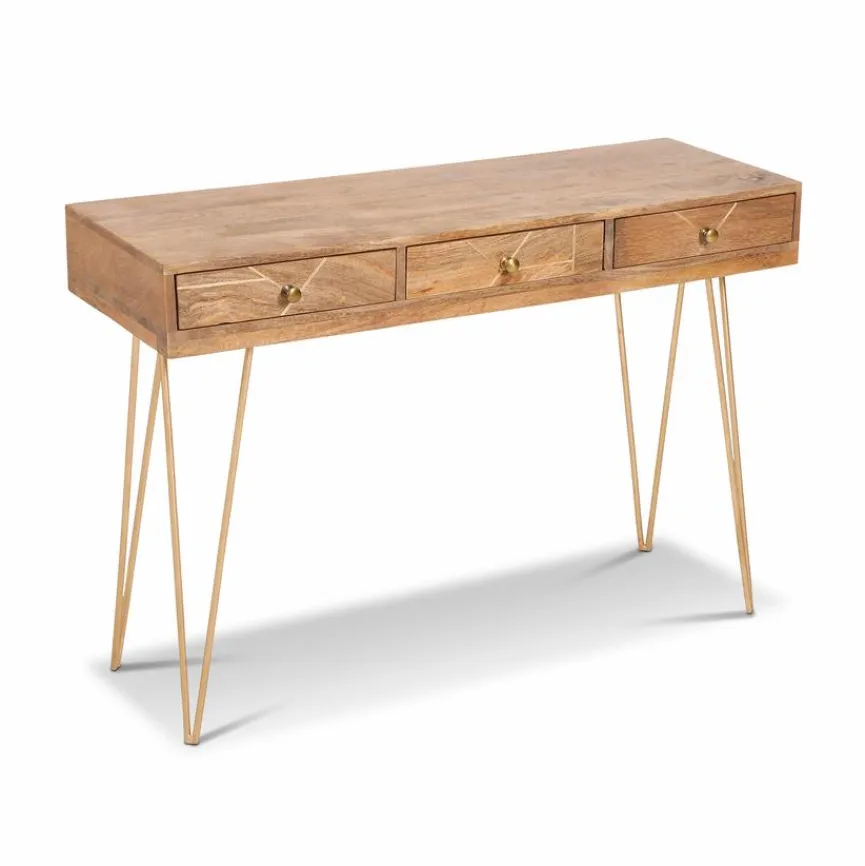Mit dem Konsolentisch Scan entscheiden Sie sich für ein ausgesprochen edles Möbelstück. Sie verfügt über einen Korpus mit drei Schubladen, der von vier schlanken Beinen getragen wird. Erledigen Sie auf dem Konsolentisch Scan kleine Schreibarbeiten und bewahren Sie in den Schubfächern beispielsweise Stifte sowie Papiere auf.