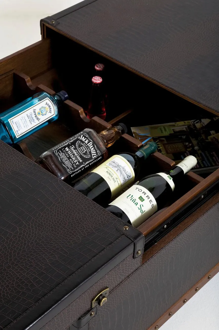 - Korpus aus Holzwerkstoff (MDF), Bezug aus pflegeleichter Lederoptik mit Krokoprint in braun