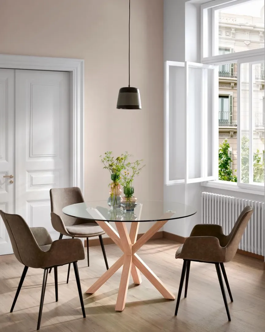 Lassen Sie mit dem Esstisch Arya 119 cm von Kave Home eine außergewöhnliche Note Gemütlichkeit in den Raum einkehren. Ein raffiniert gezeichnetes Gestell macht diesen Esszimmertisch zum Blickfang. Der Esstisch Arya 119 cm aus dem Hause Kave Home passt zu vielen modernen Möbeln in Holzoptik.