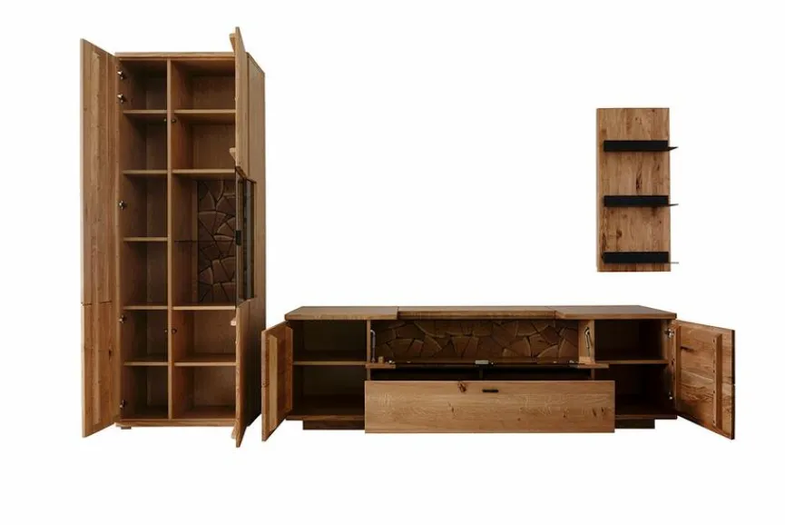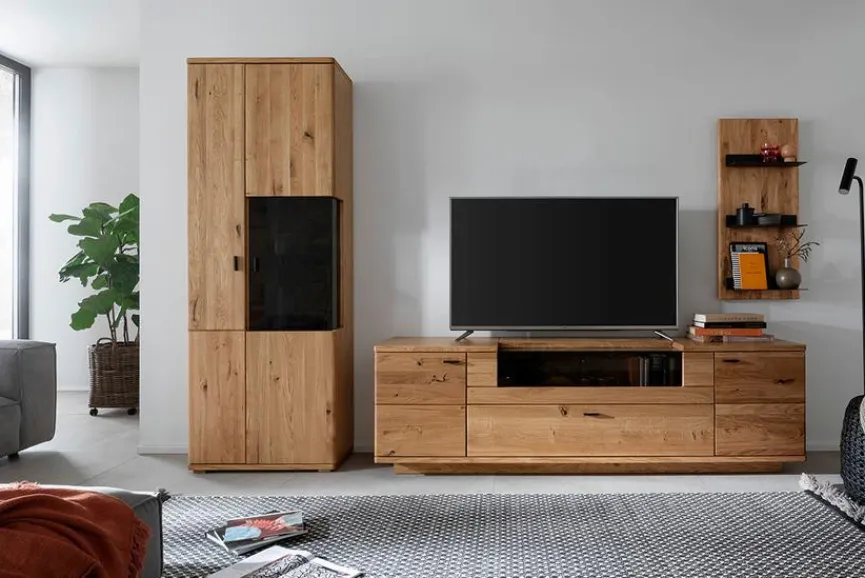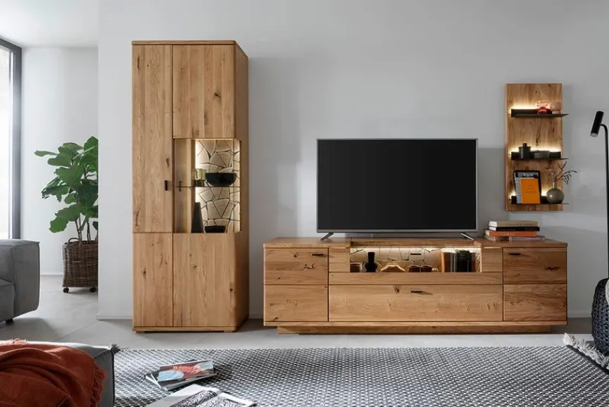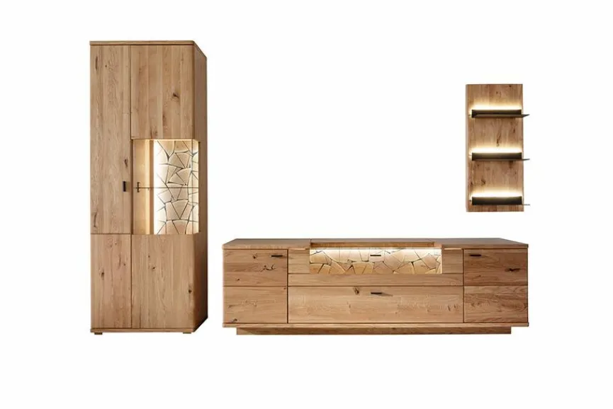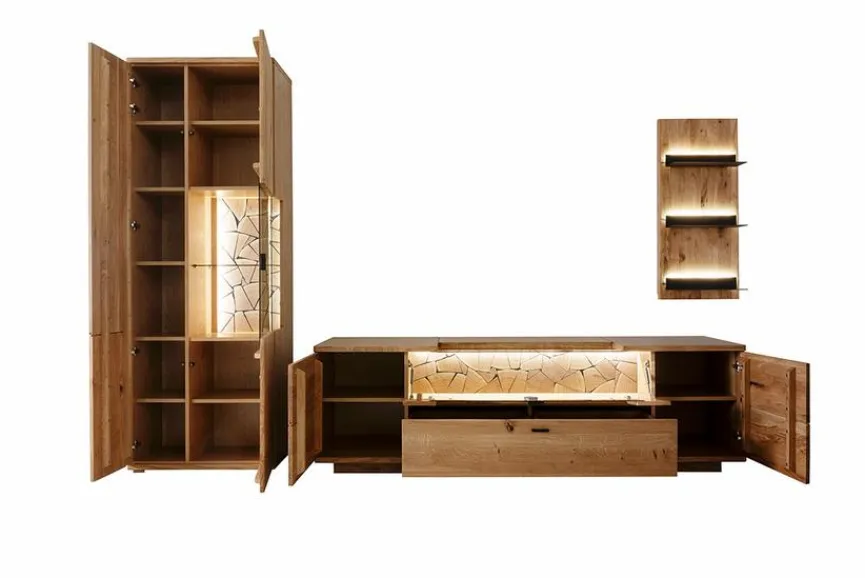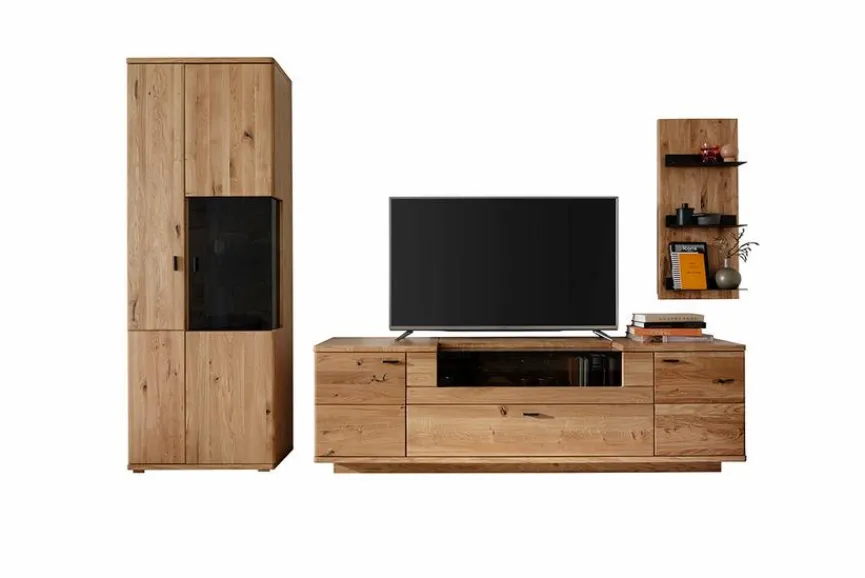 - Wohnwand aus Vitrine, TV-Lowboard, Wandboard