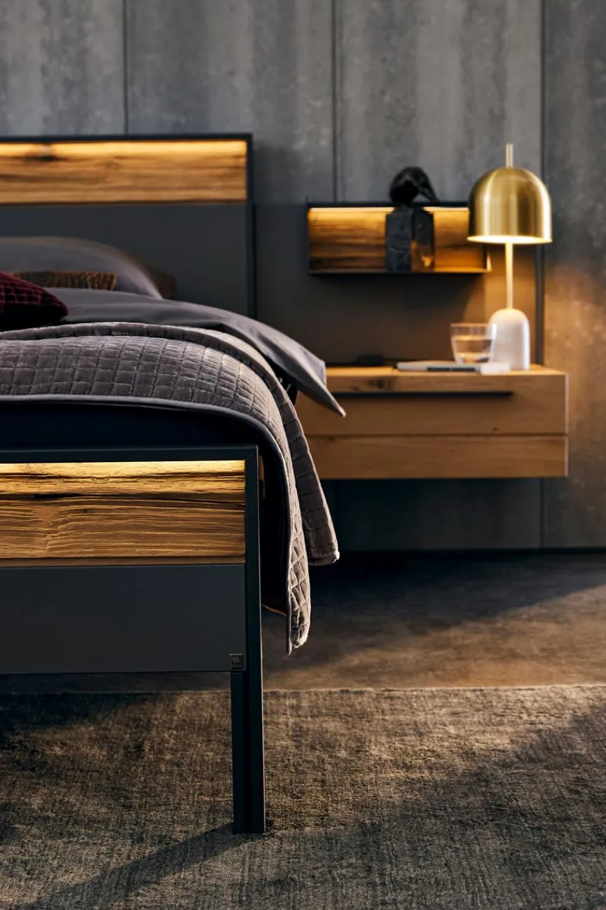 Die von Musterring hergestellte Nachtkonsole Joline bietet Ihnen die Möglichkeit, neben Ihrem Bett griffbereit kleinere Gegenstände zu verstauen oder die Bettlektüre abzulegen. Optisch überzeugt der Nachttisch mit klaren Formen und einem ansprechenden Materialmix aus Metall und Holz. Und weil die hochwertige Nachtkonsole Joline von Musterring schwebend angebracht wird, entsteht im Raum ein Gefühl von aufgeräumter Leichtigkeit.