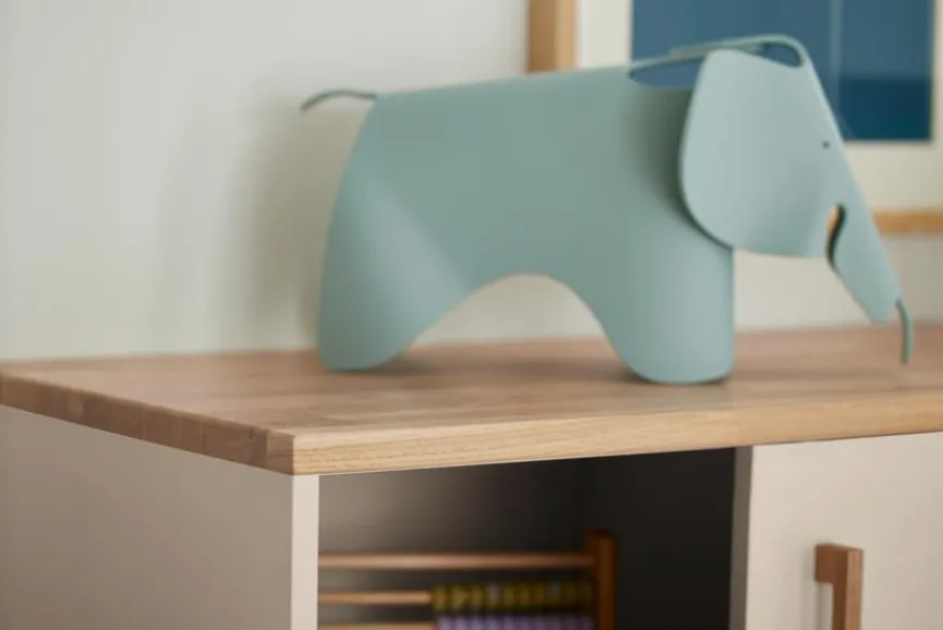 - Aus Holzwerkstoff (Spanplatte) mit kratzfester Melaminharzfolie in Cashmere-Beige, Füße, Griffe, Sockel und Deckplatte aus massiver Eiche