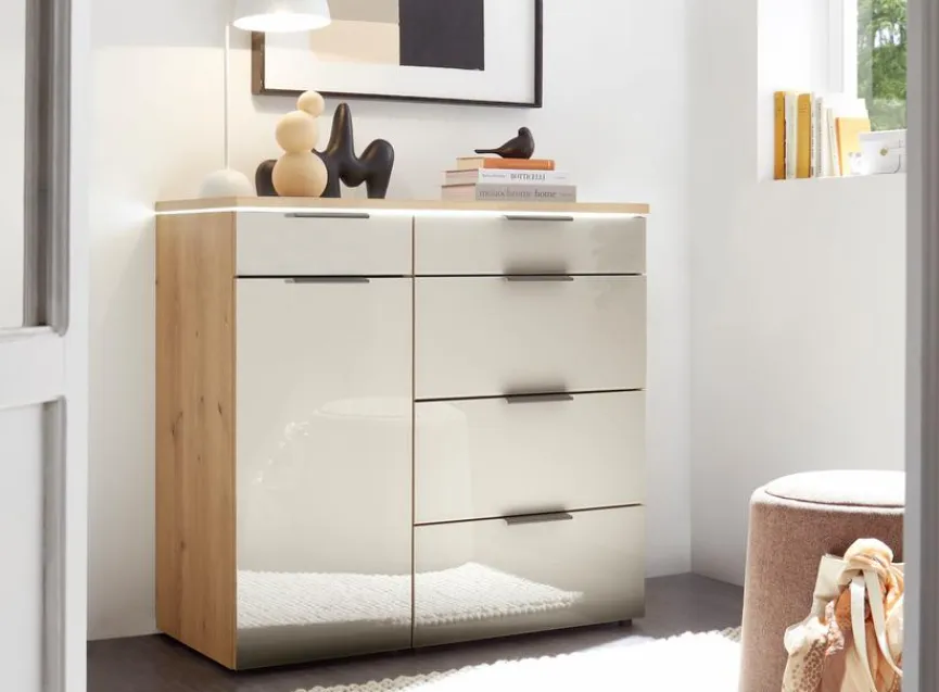 Die Kommode Como von Wiemann stellt die optimale Lösung für zusätzlichen Stauraum dar und kreiert ein stilvolles Ambiente. Mit ihren Schubladen und Fächern bietet sie Platz für Kleidung, Bücher, Wohnaccessoires und vieles mehr. Das elegante Design der Kommode Como passt nahezu in jedes Zimmer.
