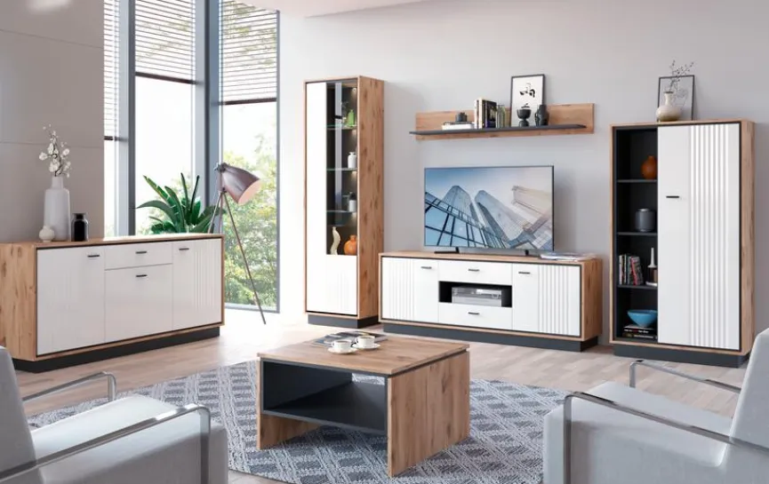 New Wójcik Vitrine Mestre Eiche / Weiß