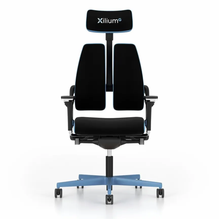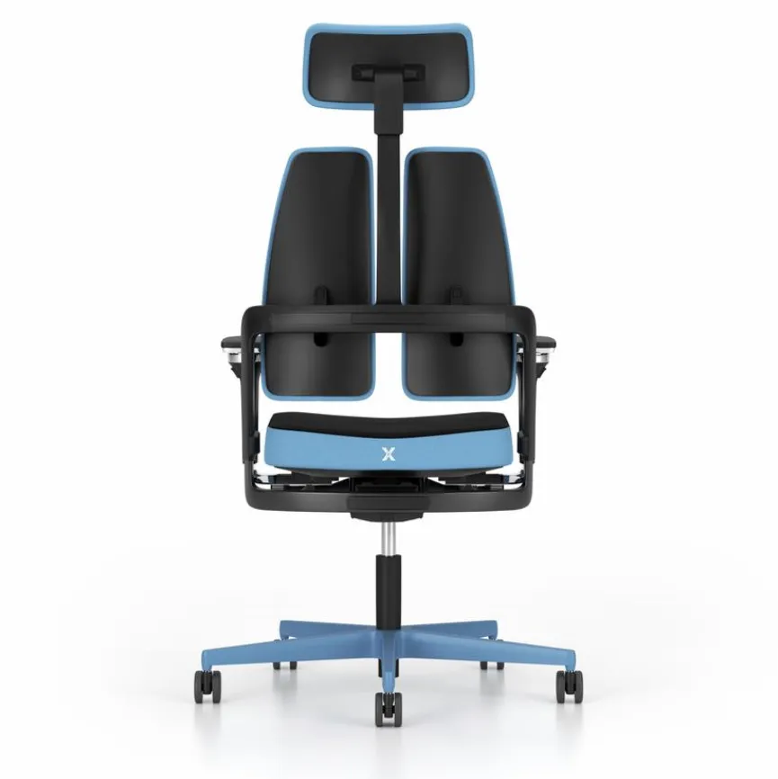 - Rückenlehne zweigeteilt und höhenverstellbar, Durch die X-Move-Mechanik bewegt sich die Rückenlehne in jede Richtung mit dem Benutzer mit