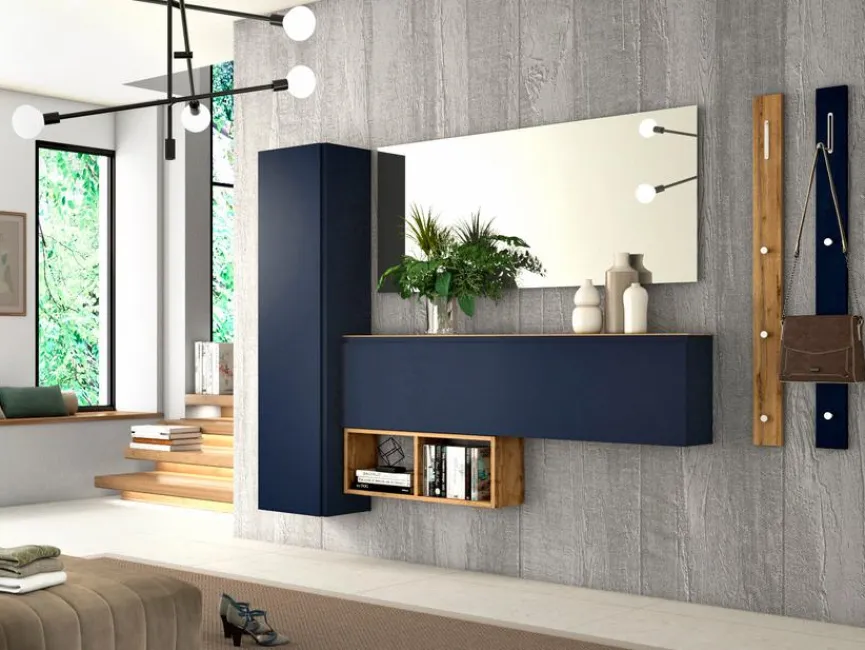 - Garderobe aus Hänge-Mehrzweckschrank, Hänge-Schuhschrank, Regal, Spiegel und 2 Garderobenpaneelen