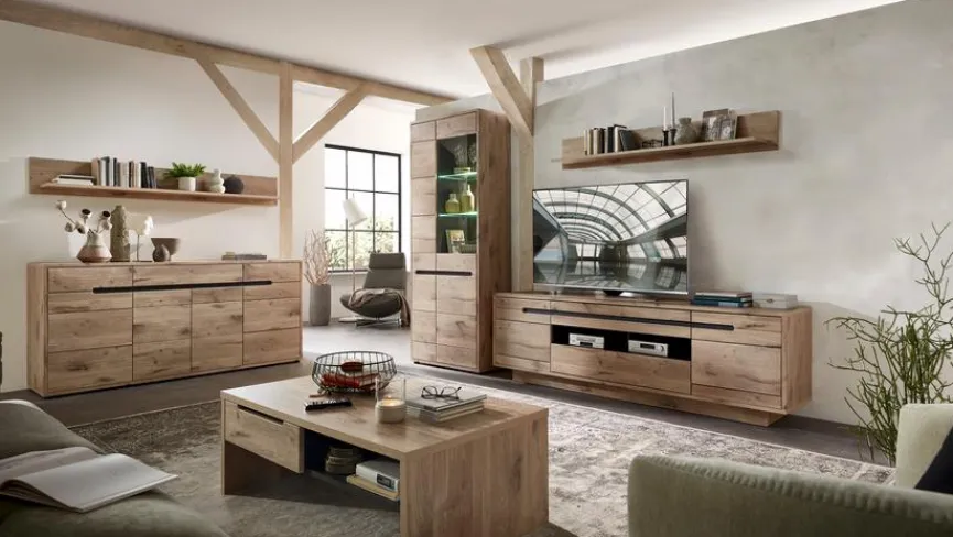 - Korpus aus Holzwerkstoff (Spanplatte) mit Dekorfolie in Viking Oak nature