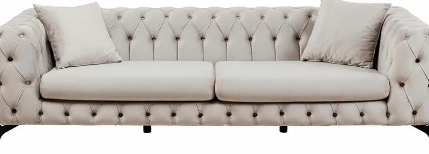 - Inkl. 2 Kissen mit Bezug aus Stoff in Samtoptik beige
