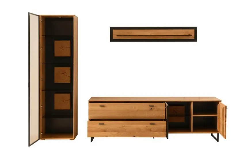 - Wohnwand aus Vitrine, TV-Element und Wandboard