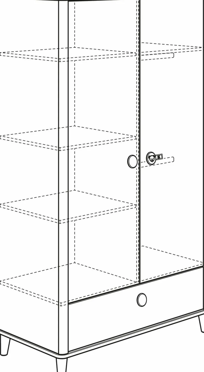 - Mit 2 Türen, 4 Einlegeböden, 2 Kleiderstangen und 1 Schubkasten