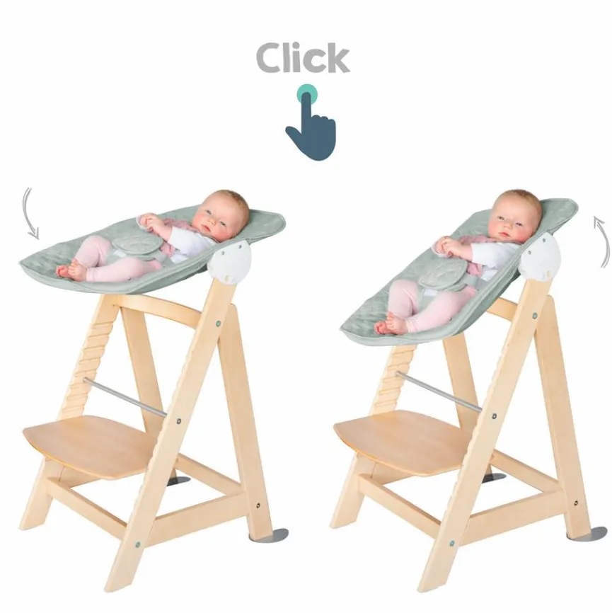 - Neugeborenenaufsatz in 2 Positionen verstellbar – Liegeposition und Fütterposition