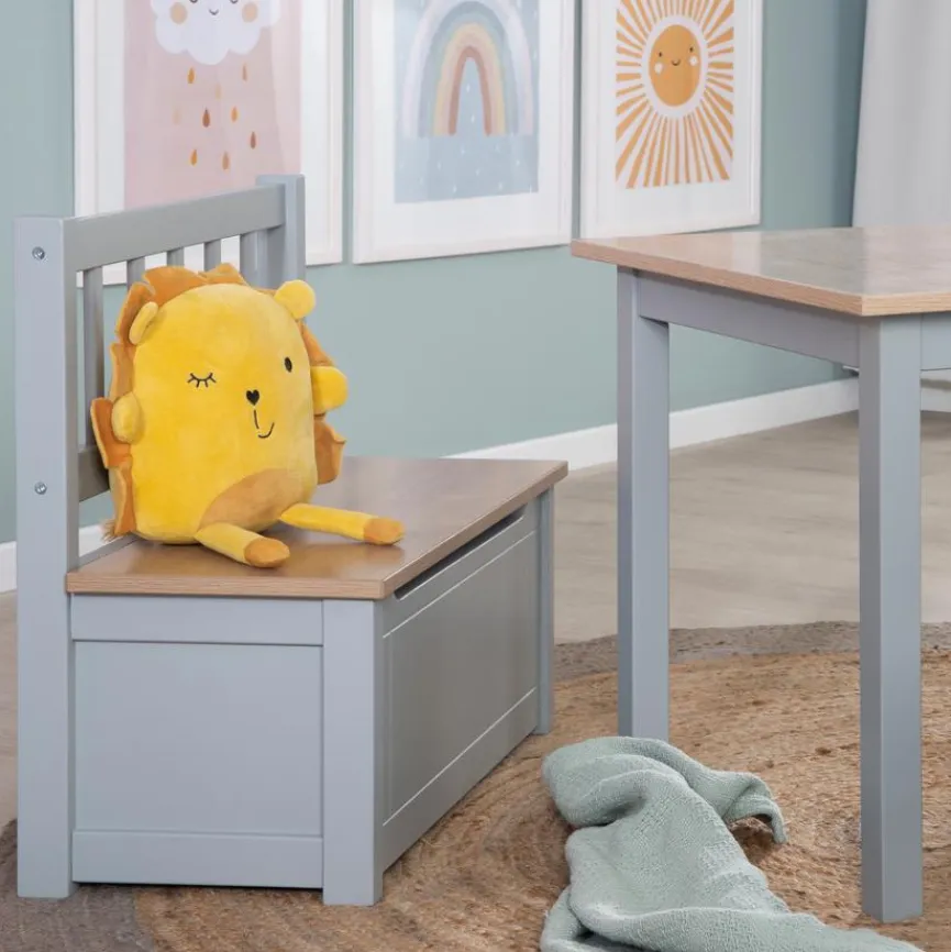 Die hochwertige Truhenbank Woody von roba Baumann lässt sich mit der gleichnamigen Kindersitzgruppe des Herstellers kombinieren. Als praktische Sitztruhe begeistert sie mit verschiedenen Verwendungsmöglichkeiten. So kann Ihr Kind bequem auf der Truhenbank Woody Platz nehmen, während sie gleichzeitig Spielsachen, Krimskrams oder Decken beherbergt. Dank ihres zeitlosen Designs passt sie außerdem zu vielen Einrichtungsstilen.