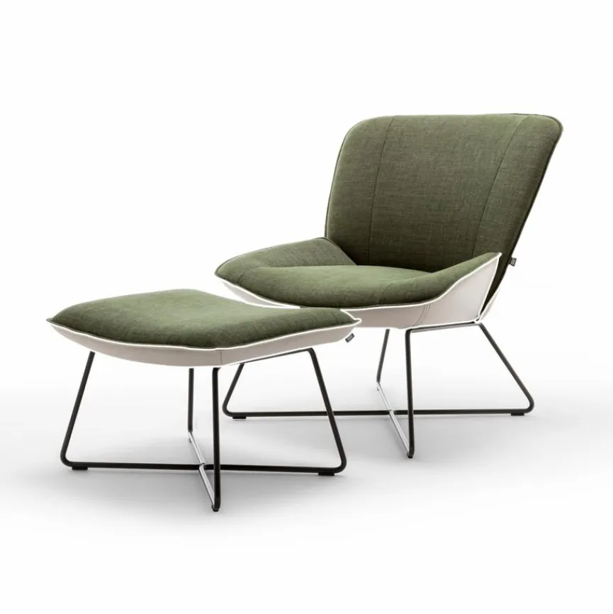 - Sitzbezug aus olive green (18.260), Korpusbezug aus Leder in kieselgrau (38.728), Füße RAL7022 umbragrau lackiert