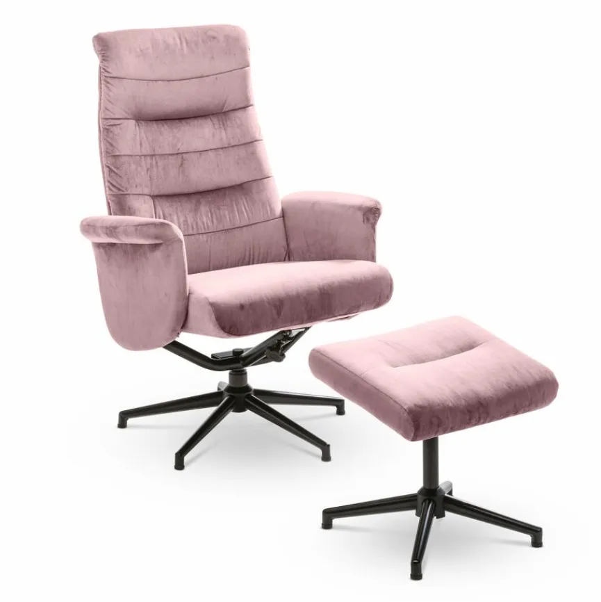 - Bezug aus Stoff (Velvet) in rosa, Fuß Metall schwarz