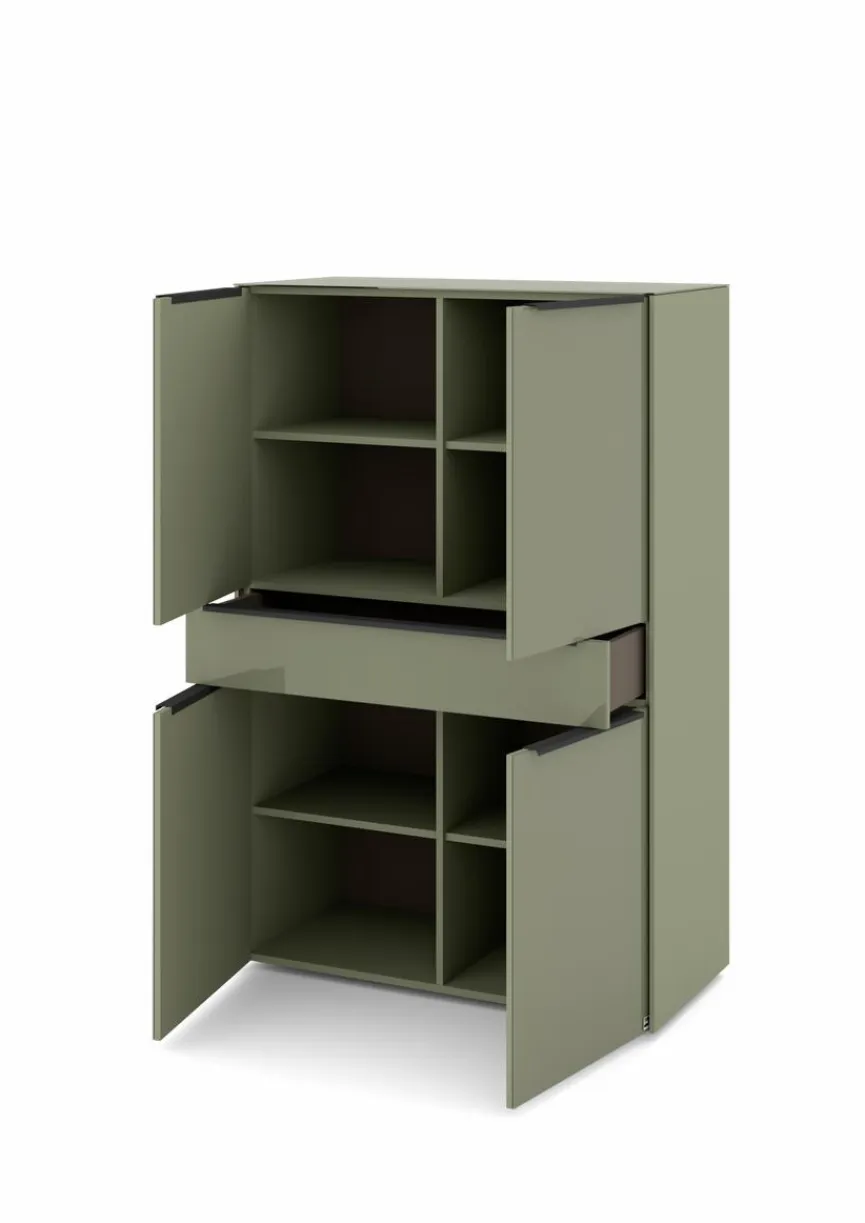 - Mit 4 Türen und 1 Schubkasten, Griffe aus Metall mit Lack in Graphitoptik
