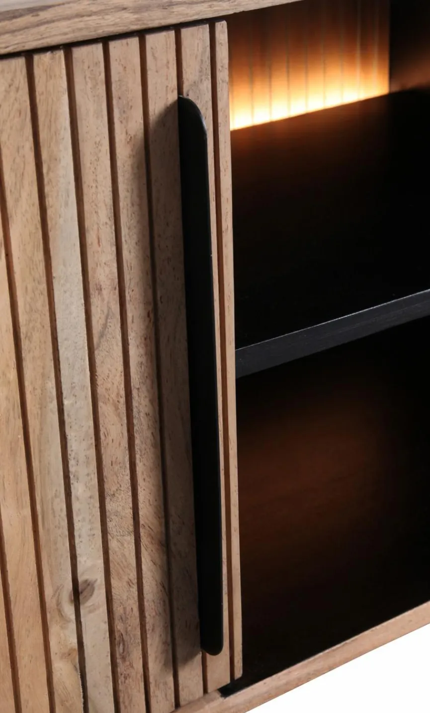 Das TV-Lowboard Bronx 4470 von WOLFMÖBEL verbindet natürliche Holzoptik mit moderner Geradlinigkeit. Die vertikale Struktur auf der Front verleiht dem TV-Unterschrank eine lebendige Ausstrahlung und sorgt für einen zusätzlichen Reiz. Ob im Wohnzimmer oder im Medienbereich, mit dem TV-Lowboard Bronx 4470 zieht ein stilvoller Blickfang ein, der Funktionalität und Ästhetik auf gelungene Weise kombiniert.