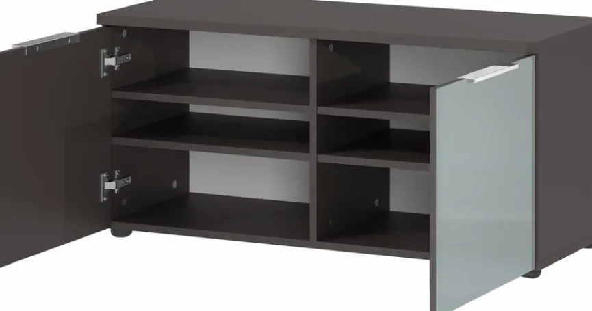 Die Garderobenbank Genova aus dem Hause Germania bietet Ihnen vier Einlegeböden und zwei Fächer hinter ihren Türen. So trägt die Umkleidebank mühelos zur Ordnung in Ihren Räumlichkeiten bei. Zudem wirkt die dunkel beschichtete Garderobenbank Genova äußerst zeitgemäß, weshalb sie zu vielen aktuellen Wohnstilen passt.