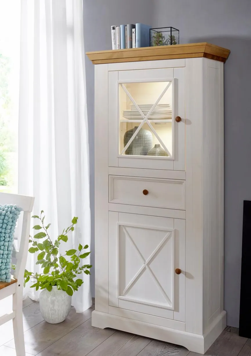 Die attraktive Vitrine Minnesota besitzt durch Ihre Kombination aus Echtholz und Glas einen ganz eigenen Charme. Außerdem bietet die Glasvitrine reichlich Platz und lässt sich vielseitig benutzen, zum Beispiel für Bücher, Dekoration und mehr. Auch hinsichtlich ihrer Verarbeitung lässt die Vitrine Minnesota keine Wünsche offen.