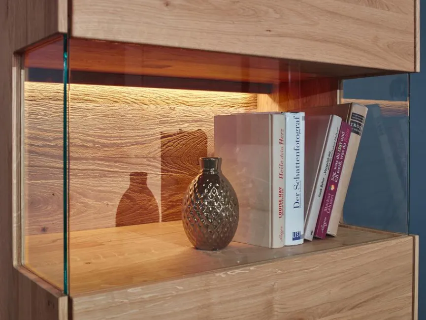 Mit der stilvollen Vitrine Missouri verleihen Sie Ihrem Zuhause ein zeitlos klassisches Ambiente.Sie hat als besonderes Highlight zwei beleuchtete Fächer aus Glas, dahinter können Sie Ihre Lieblingssammlerstücke oder auch kostbare Bücher wirkungsvoll präsentieren, ohne dass diese dem ständig anfallenden Staub ausgeliefert sind. Weiteren Stauraum bieten fünf Fächer mit Holzfronten. Die Vitrine Missouri ist mit allen Einrichtungsgegenständen wundervoll zu kombinieren.