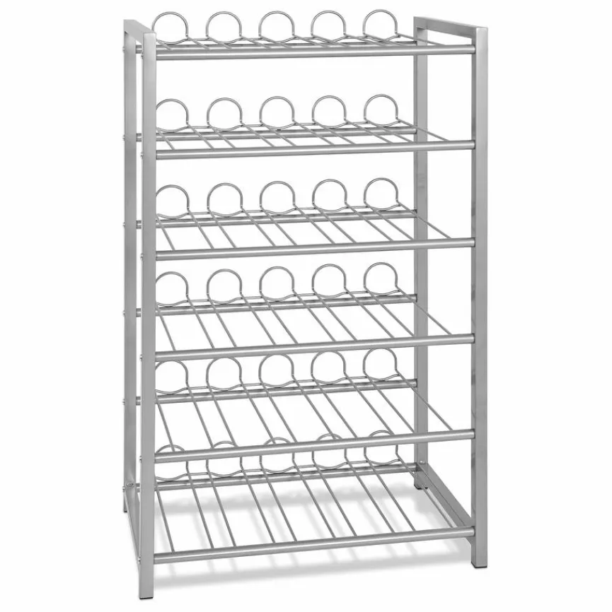 Mit dem Flaschenständer Burgos können Sie Ihren Wein stilvoll lagern. Auf insgesamt 6 Ebenen bietet Ihnen der Flaschenhalter Platz für 54 Flaschen mit einem jeweiligen Volumen von bis zu 1,5 Litern. Dank der Materialwahl und der offenen Gestaltung wirkt der Flaschenständer Burgos besonders modern.