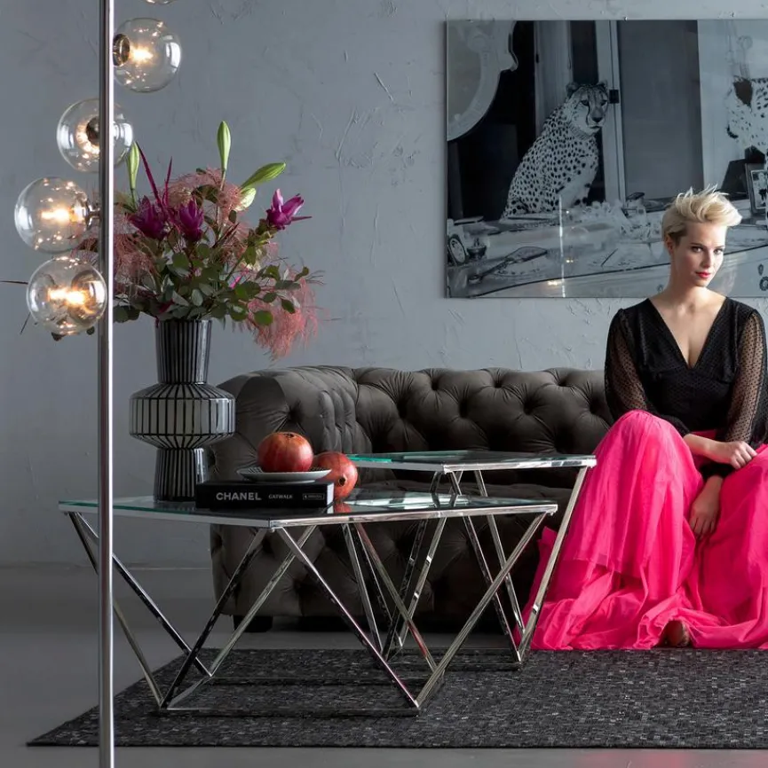 Der Beistelltisch 85031 Cristallo von KARE könnte aus einem Glaspalast stammen. Mit dem hochglanzpolierten Gestell und der Glastischplatte strahlt er kühle Eleganz aus. Das edle Design passt perfekt zu Hochglanzmöbeln in Ihrem Wohnzimmer. Alternativ bietet sich der Beistelltisch 85031 Cristallo von KARE mit quadratischer Tischplatte als Blickfang im Eingangsbereich an.
