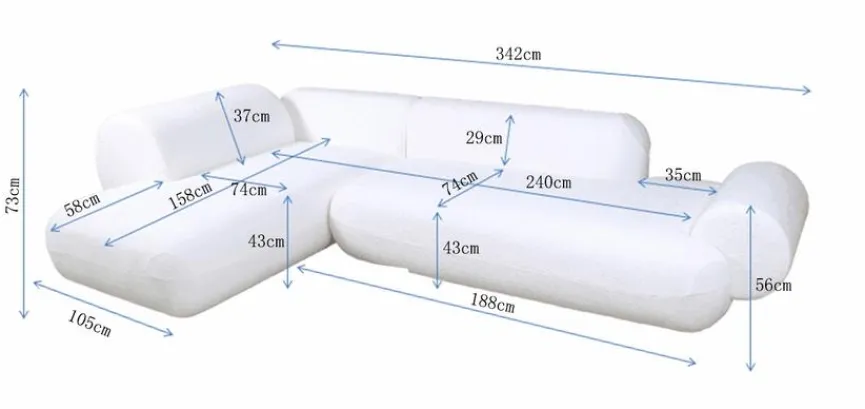 Farbe: WeißMaterial: StoffGröße: Breite: 345,00 cm, Höhe: 74,00 cm, Tiefe: 195,00 cm