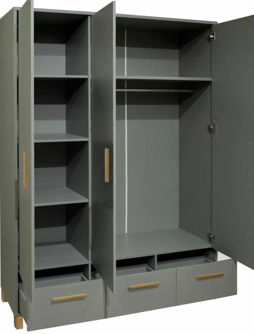 - Set besteht aus Babybett 70 x 140 cm, Kleiderschrank 3-trg. BHT 148 x 195 x 51 cm und Wickelkommode inkl. Wickelaufsatz BHT 119 x 99 x 77 cm