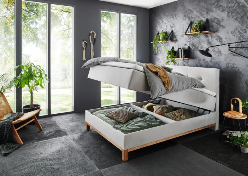 - Boxunterbau mit Bonellfederkern, mit 1 Bonellfederkernmatratze 120 x 200 cm, Bonell-Boxunterbau und Bonellfederkernmatratze befinden sich zusammen in einem durchgehenden Bezug