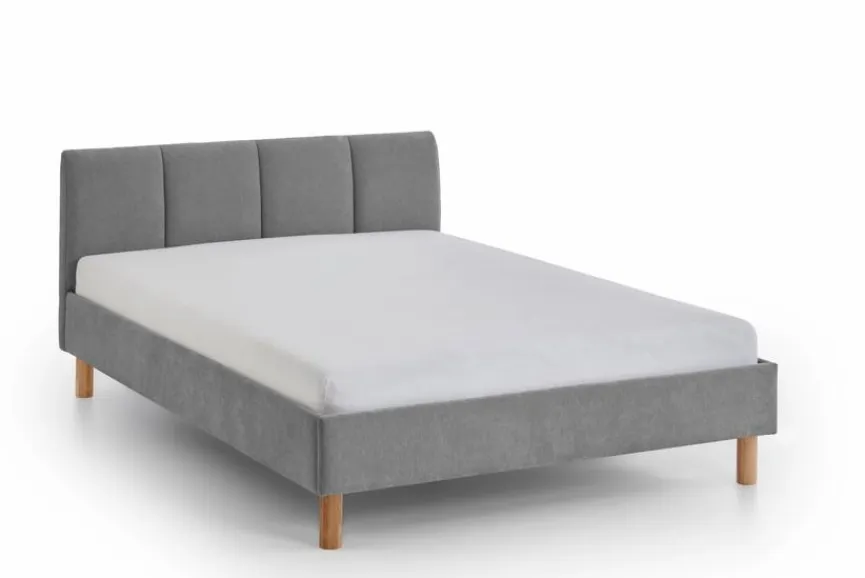 - Bezug aus Stoff in grau, Füße aus massivem Gummibaumholz, eichefarbig lackiert