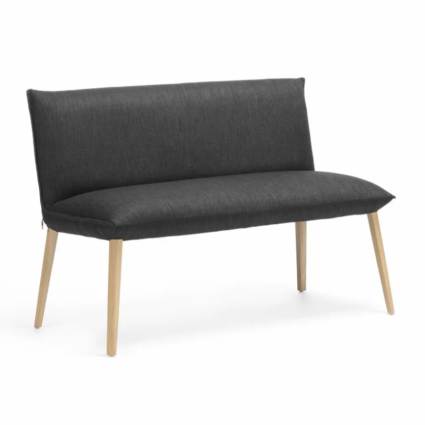 Die Bank Soft von Mobitec lenkt mit schlanken Füßen aus Holz und einem wunderbar schlichten Bezug die Blicke auf sich. Für den Komfort sorgt bei dieser Sitzbank unter anderem eine mehrschichtig aufgebaute Polsterung. Charmant wirken kann die Bank Soft zum Beispiel in einem Wohnbereich, der im gemütlichen Scandi-Design eingerichtet ist.