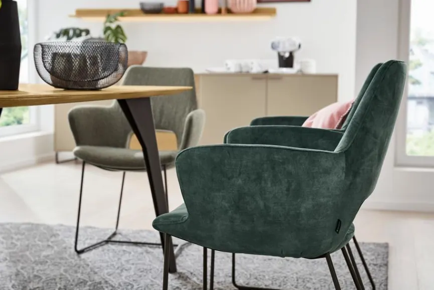 Dank der formschönen, gemütlichen Schale trägt der Stuhl Navarra aus dem Hause Musterring zum Komfort in Ihren Zimmern bei. Vor allem die charakteristische Öffnung am Rücken sorgt für einen echten Eyecatcher. Zudem garantiert Ihnen der Stuhl Navarra aufgrund des robusten Schlittengestells aus Metall eine hohe Stabilität.