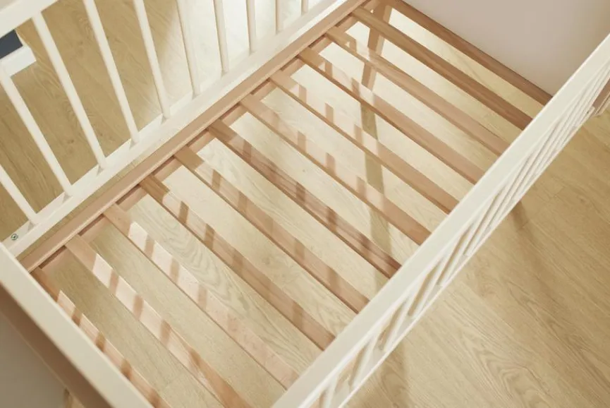 - Durch Abmontieren der Gitterseite kann das Beistellbett zum Kindersofa umgebaut werden.