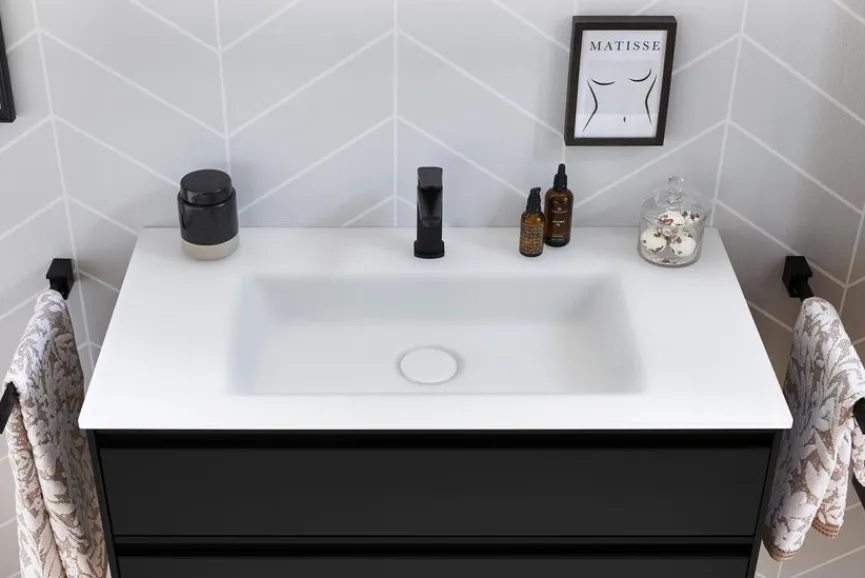 Armatur, Handtuchhalter und Dekoration sind nicht im Lieferumfang enthalten