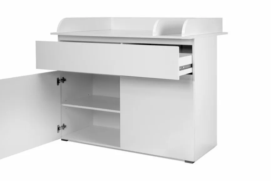 Erweitern Sie das Kinderzimmer um die Wickelkommode Image, die eine gelungene Verbindung von Stil und Funktionalität ist. Ihr zeitloses Design macht sie zu einem wertvollen Möbelstück in jeder Einrichtung. Der Wickeltisch bietet ausreichend Stauraum hinter seinen Türen und in einer geräumigen Schublade. Wählen Sie den platzsparenden Komfort der Wickelkommode Image, der Sie und Ihr Baby von der Kindheit an bis ins Erwachsenenalter begleitet.