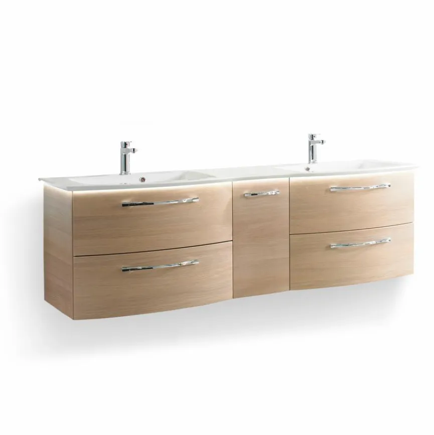 - Mit Mineralmarmor-Doppel-Waschtisch in Weiß, mit integriertem Überlauf