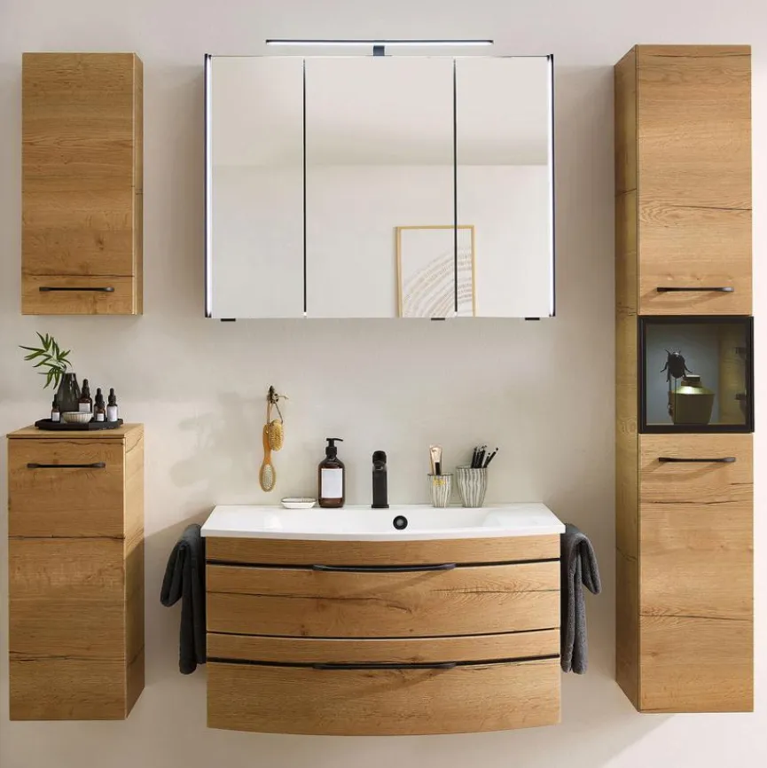 Der Spiegelschrank PE 7045 von Pelipal bietet Ihnen mit drei Drehtüren und sechs Glaseinlegebögen großzügigen Stauraum für Ihre Badutensilien. Das seitliche LED-Profil und die integrierte Aufsatzleuchte sorgen für eine angenehme Beleuchtung. Mit seinem stilvollen Design und raffinierten Details ist der Spiegelschrank PE 7045 nicht nur praktisch, sondern auch ein echter Blickfang in Ihrem Badezimmer.