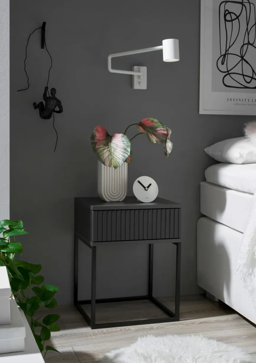 Mit dem Nachttisch Marle von Pol Power haben Sie neben Ihrem Bett eine charmante Ablage für beispielsweise Bücher, das Smartphone oder die Nachttischlampe. Zudem hält die moderne Nachtkonsole in der Schublade Platz für die Kleinigkeiten des Alltags bereit. Ideal aufgestellt ist der Nachttisch Marle in der Nähe des Schlafplatzes.