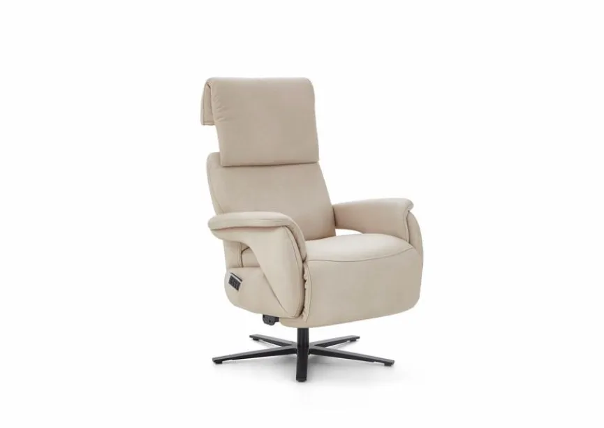 - Bezug aus Leder (Evita) in ecru, Sternfuß schwrz matt lackiert (DT6)