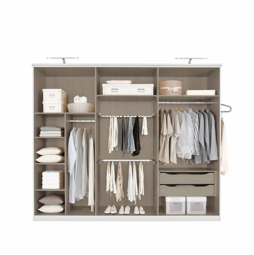 Die Wäscheeinteilung Zubehör kann unkompliziert in den gleichnamigen Kleiderschränken angebracht werden. Sie bietet ausreichend Platz zum Verstauen von Kleidungsstücken und anderen Utensilien. Die robuste Verarbeitung der Wäscheeinteilung Zubehör hält auch stärkerem Gewicht problemlos stand und löst alle Platzprobleme. Metallelemente sorgen für ausreichend Standfestigkeit.