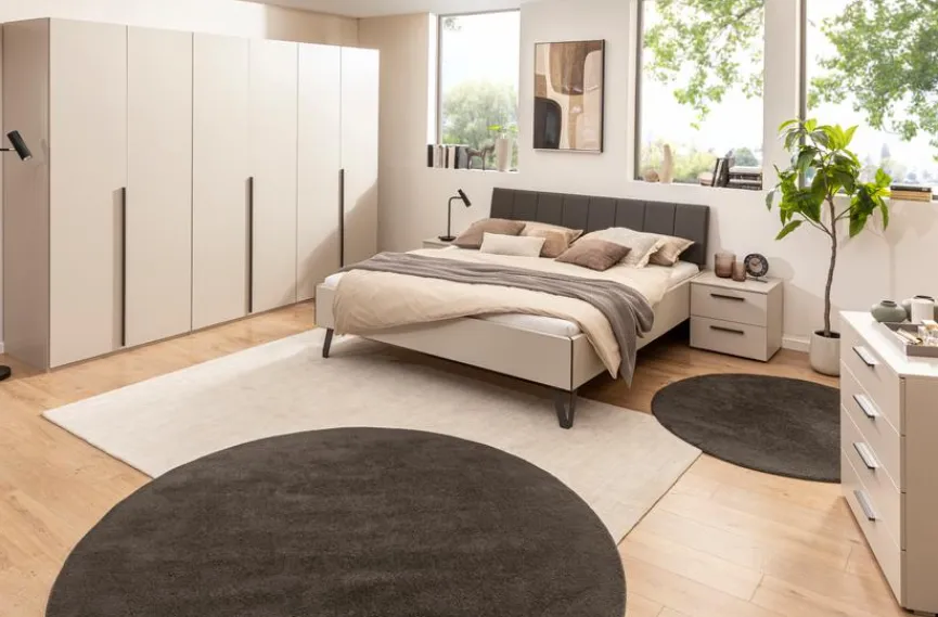- Set besteht aus Bett 180 x 200 cm, Kleiderschrank 301 x 223 cm und 2x Nachttische