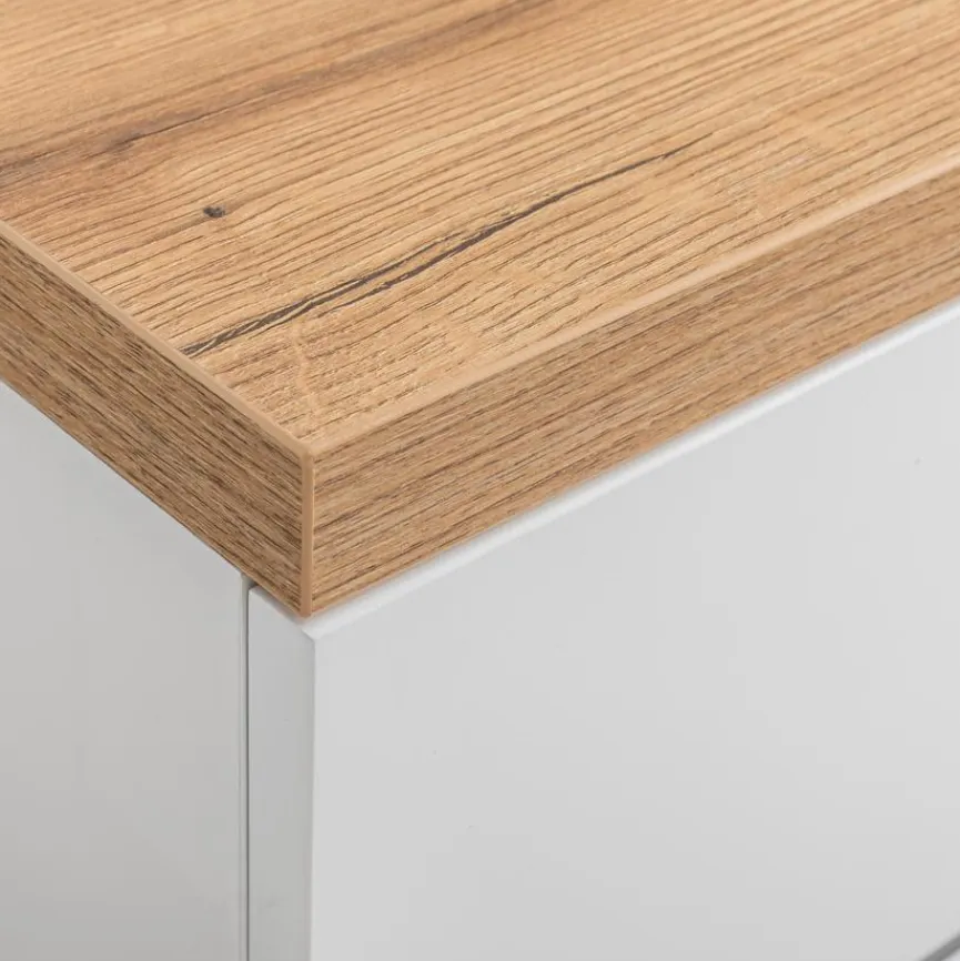 - Korpus aus Holzwerkstoff (Spanplatte) mit kratzfester Melaminharzfolie in Weiß glänzend