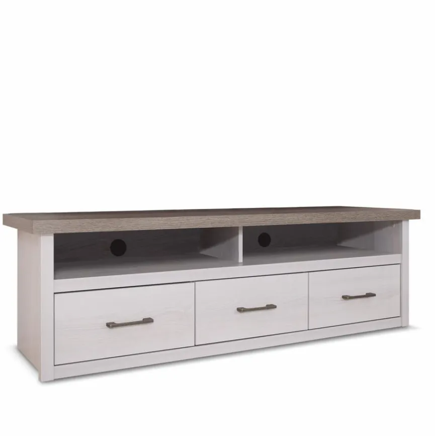 Das TV-Element Luca ist nicht nur funktionell, sondern überzeugt auch durch das schicke Design. Klare Linien und eine gelungene zweifarbige Optik machen das TV-Lowboard zu einem echten optischen Highlight. In drei Schubfächern und einer breiten offenen Ablagefläche bietet das TV-Element Luca genügend Platz zum Aufzubewahren und Verstauen.