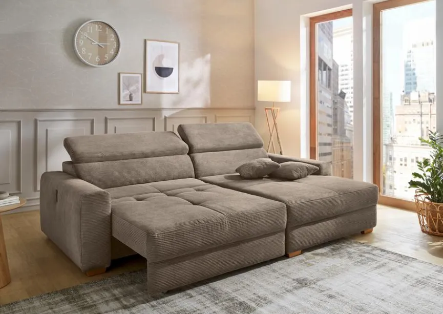 Farbe: TaupeMaterial: CordGröße: Breite: 277,00 cm, Höhe: 109,00 cm, Tiefe: 187,00 cm