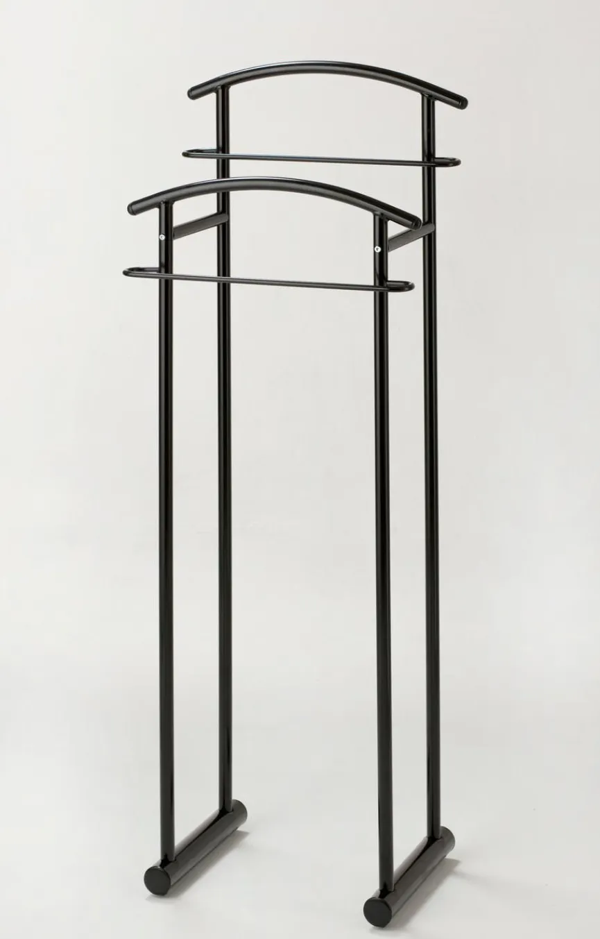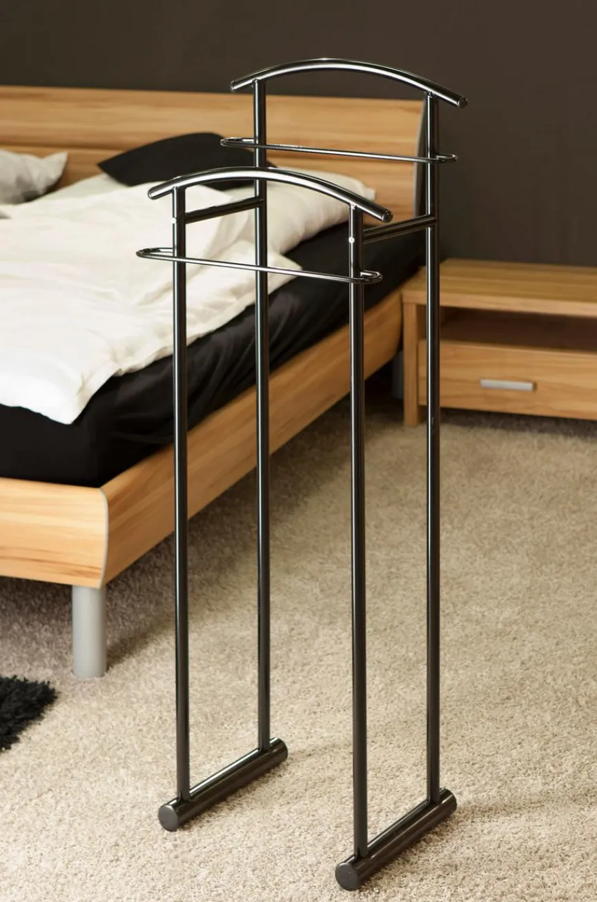 Der Herrendiener Jürgen eignet sich hervorragend, um Hemden, Hosen, T-Shirts und weitere Kleidungsstücke aufzuhängen. Außerdem punktet der Kleiderständer mit einem zurückhaltenden Design. Somit fügt sich der funktionelle Herrendiener Jürgen ganz problemlos in die bestehende Einrichtung des Schlafzimmers oder in andere Räume ein.