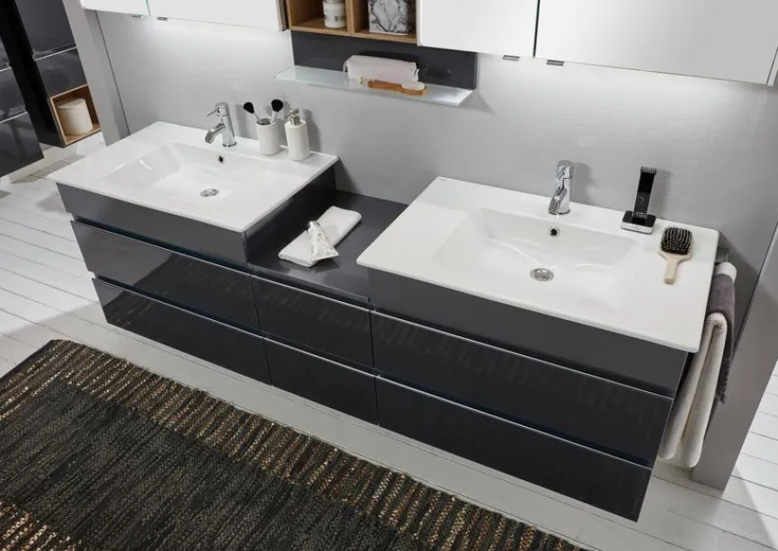 Wenn Sie moderne Designs und geradlinige Formen lieben, können Sie mit dem Waschtischunterschrank 3290 von Marlin auch Ihr Badezimmer in diesem zeitgemäßen Stil einrichten. Die beiden Waschtische aus hochwertiger Keramik ermöglichen es Ihnen, diesen Badezimmerschrank gleichzeitig mit Ihrem Partner zu benutzen. Für die Badutensilien der ganzen Familie bietet der Waschtischunterschrank 3290 aus dem Hause Marlin angenehm viel Stauraum.