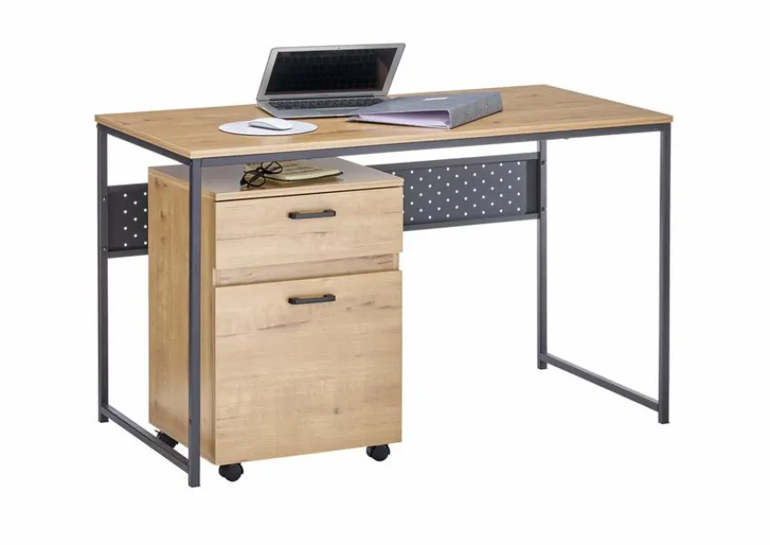 Mit dem modernen Schreibtisch Corinth von MCA werden Ihre Arbeiten im Homeoffice zur angenehmen Tätigkeit. Dafür sorgen die großzügigen Abmessungen, die reichlich Platz für die Unterlagen und das Notebook bieten. Darüber hinaus lässt sich der Schreibtisch Corinth perfekt mit dem dazu passenden Container ergänzen, in dem Sie Ihre Büroutensilien unterbringen können.