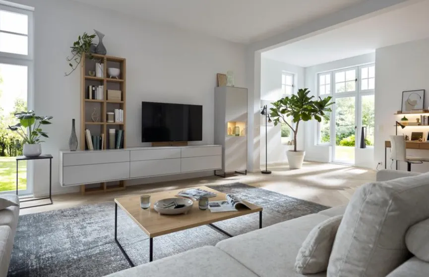 Mit der Wohnwand Kara-Frame von Musterring schaffen Sie im Handumdrehen ein stimmiges Gesamtbild für Ihr Zuhause und gewinnen dabei jede Menge Stauraum. Sie besteht aus einer Vitrine, einem Wandboard und einem Regal, welche mit Einlegeböden und Schubkästen ausgestattet sind. Während Regal und Vitrine einen festen Ort für Ihre Habseligkeiten bieten, kann das Wandboard zur Heimkinoinstallation genutzt werden, so lässt die Wohnwand Kara-Frame keine Wünsche offen.