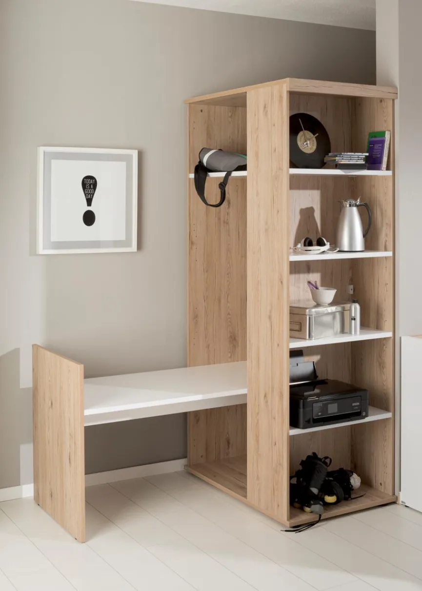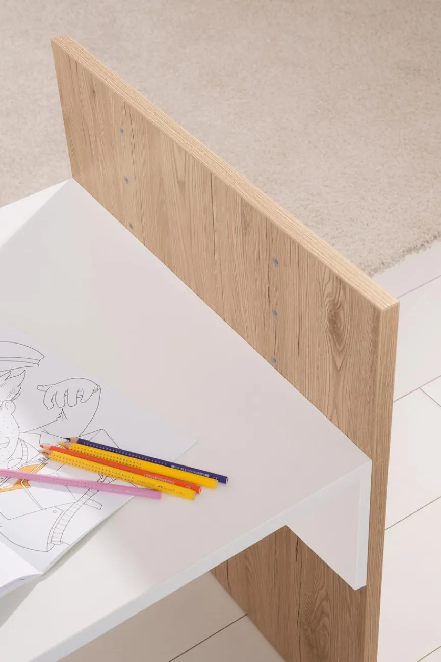 - Aus Holzwerkstoff mit kratzfester Melaminharzfolie in kreideweiß und Eiche-Bordeaux-Nachbildung