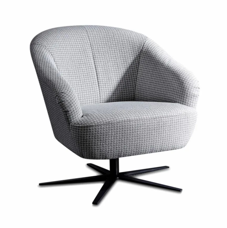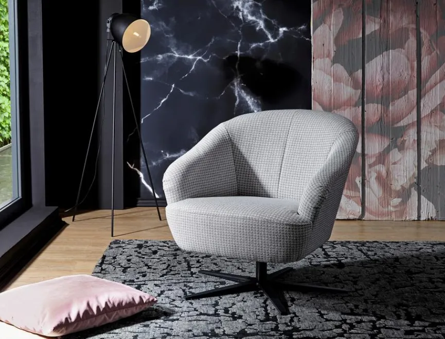 - Bezug aus Stoff (1710) in grau gemustert (18), Fuß Metall schwarz
