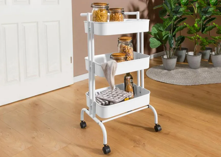Der Servierwagen Alea erleichtert die Arbeit und erweist sich beim Verteilen von Speisen und Getränken als komfortables Transportmittel. Darüber hinaus lässt sich der Servierwagen Alea in Küchen, Kinderzimmern und Büros als flexibles Beistellmöbel platzieren. Er kann zur vorübergehenden Aufbewahrung von Vorräten oder Spielzeug dienen. Abgerundete Kanten mindern die Verletzungsgefahr.